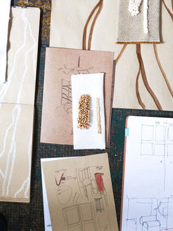 natural raffia hand-embroideries, wool & linen fabric.